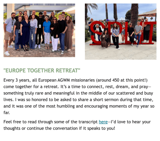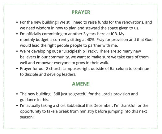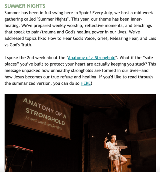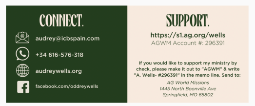I would love to send you updates and testimonies about the ministry here! If you would like to receive newsletters, click on this link to my virtual address book and enter in your info: http://eepurl.com/cm8KmP