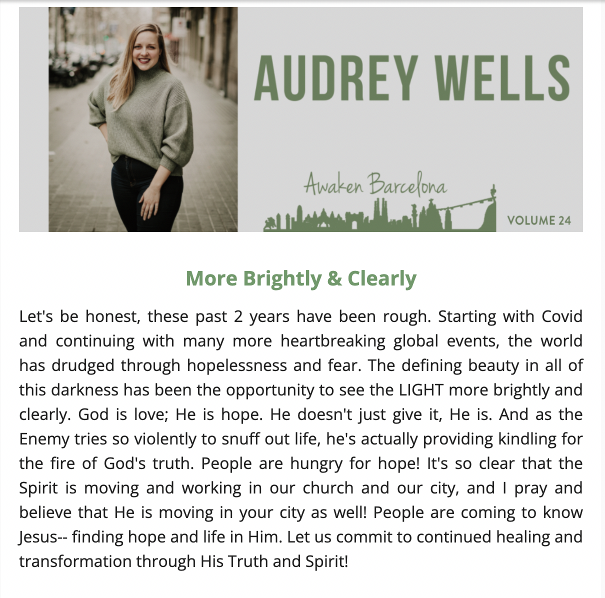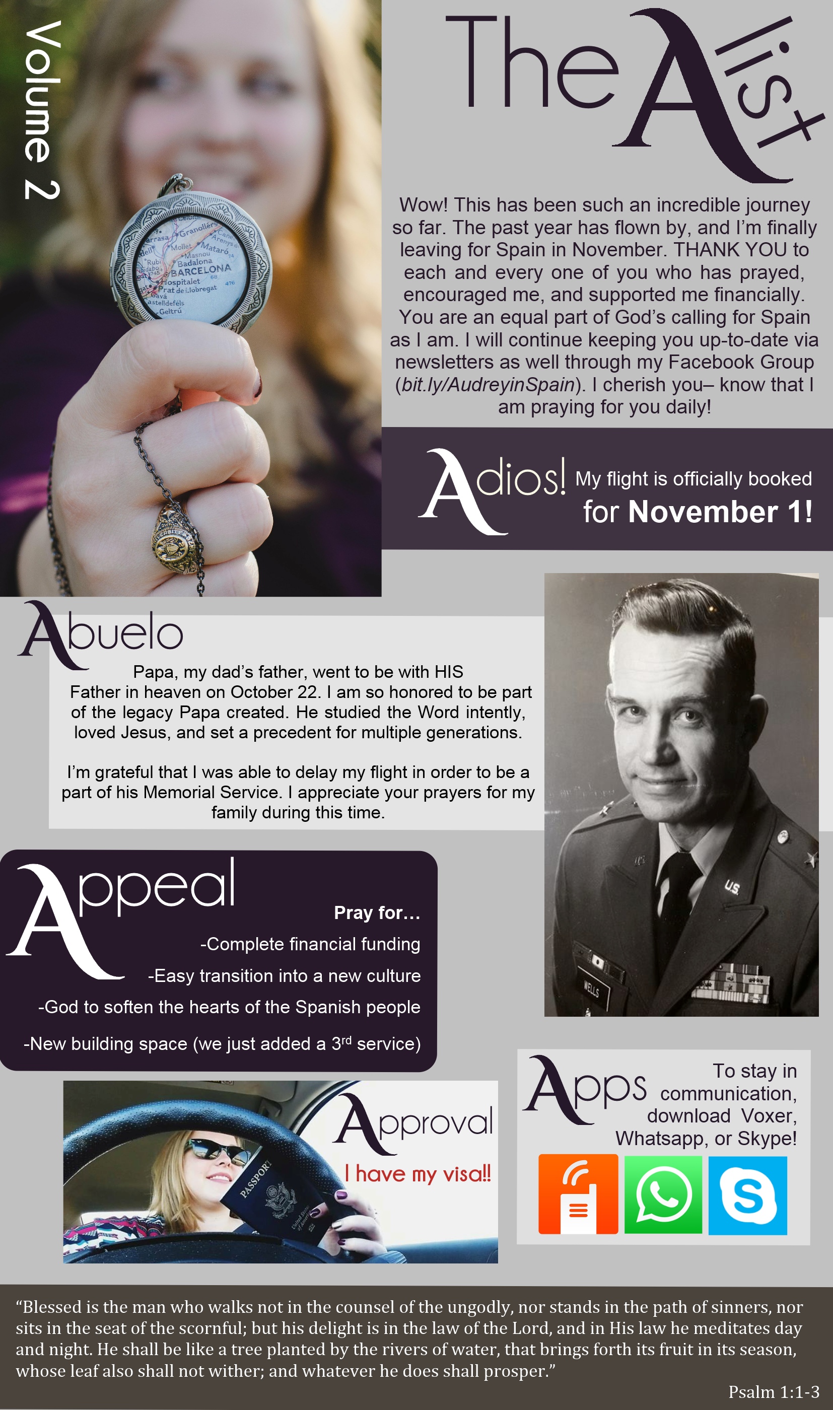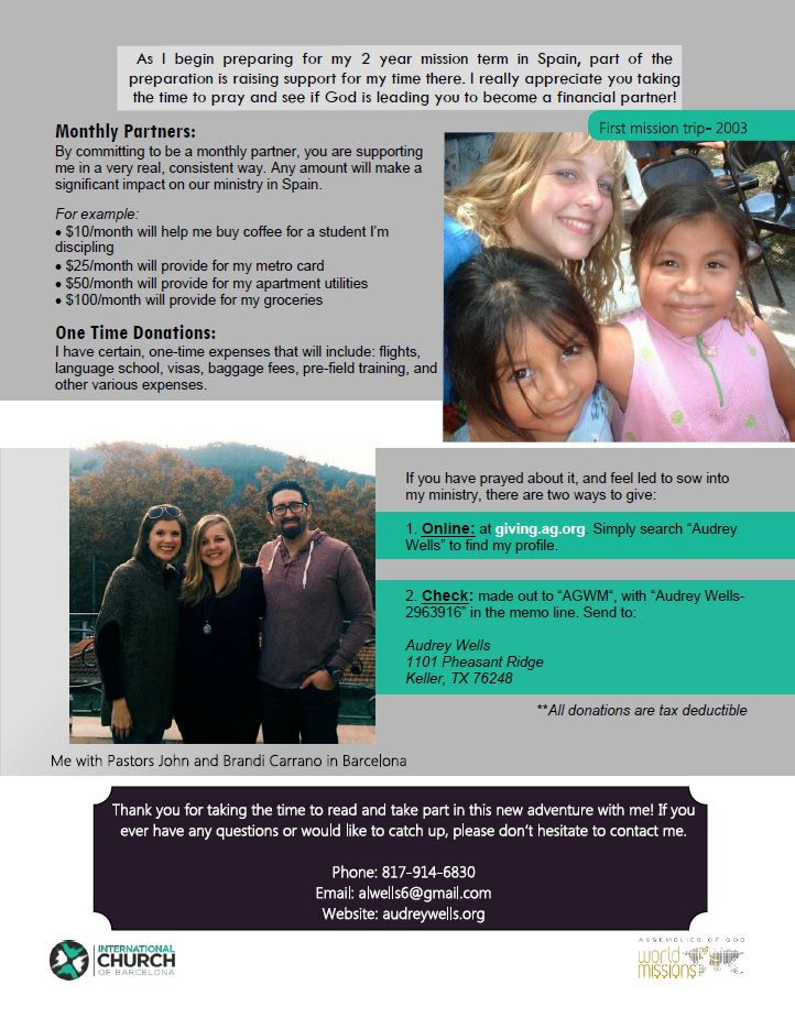 I would love to send you updates and testimonies about the ministry here! If you would like to receive newsletters, click on this link to my virtual address book and enter in your info: http://eepurl.com/cm8KmP